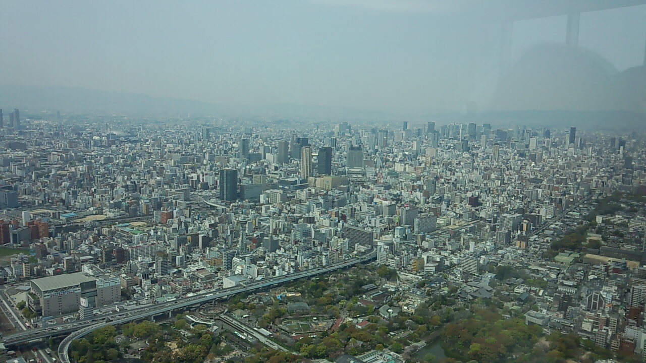 展望台は360度全面ガラスばりで大パノラマが体感出来ます。通天閣や大阪城、天気が