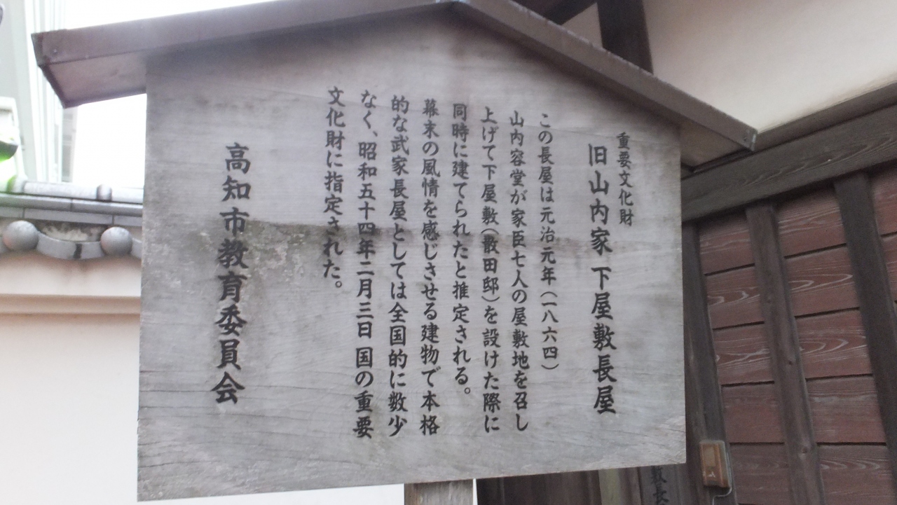 昭和53年、長屋(建物)は高知市に譲渡され、同54年、国の重要文化財に指定されました。同55年2月保存修理に着手、56年9月に完成しました。