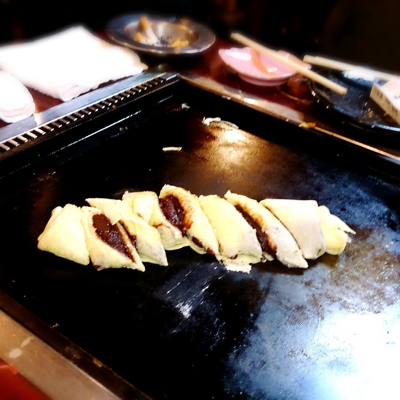 もんじゃが食べたくなると伺うお店。月島のおしお。何軒もあるおしおの中でも伺うことが一番多いお店です。地方からきたお友達を案内するととても喜ばれます。何度もうかがっているのですが今回は前から気になっていた「あんこまき」に初めて挑戦することができました。