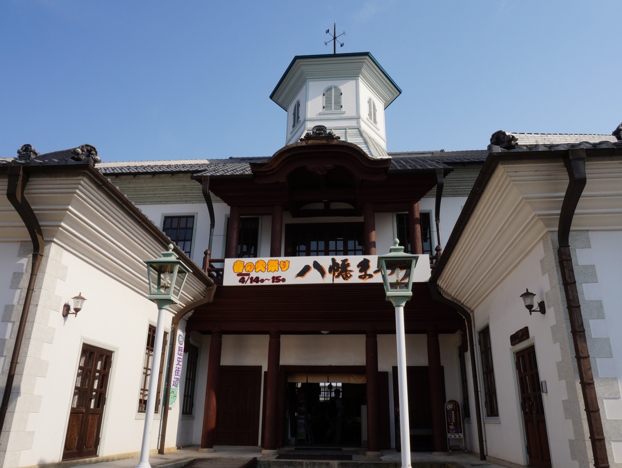 観光案内所とは思えない趣のある建物は、明治10年に八幡東学校として建築されたものです。