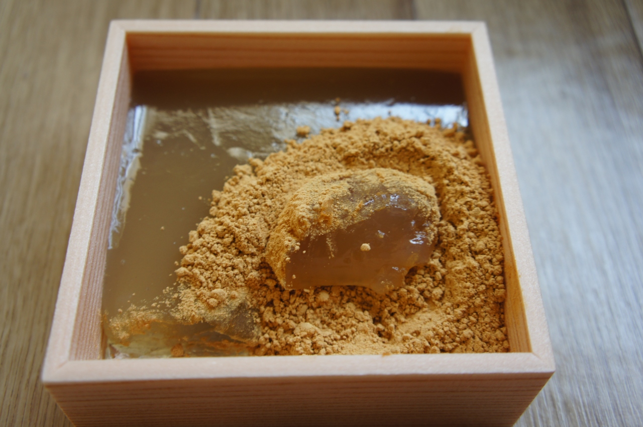 笹屋昌園は、龍安寺に向かう商店街。ここにわらび餅の最高峰という「極」という商品があって、前から気になっていました。今回は、それをゲット。プルンとした寒天状のわらび餅は、ほんのり甘さがあって、うんまーい。黄な粉をたっぷりと掛けていただきましたが、黄な粉なしでもOKでしょう。しかし、敢えて言えば、癖のないうまさで平板かも。野趣のある宝泉のわらび餅と比べるとですけどね。