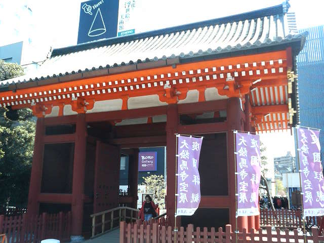 朱色の切妻造りで、門の左右には増長天と持国天という仏様が控えている見事な門です。