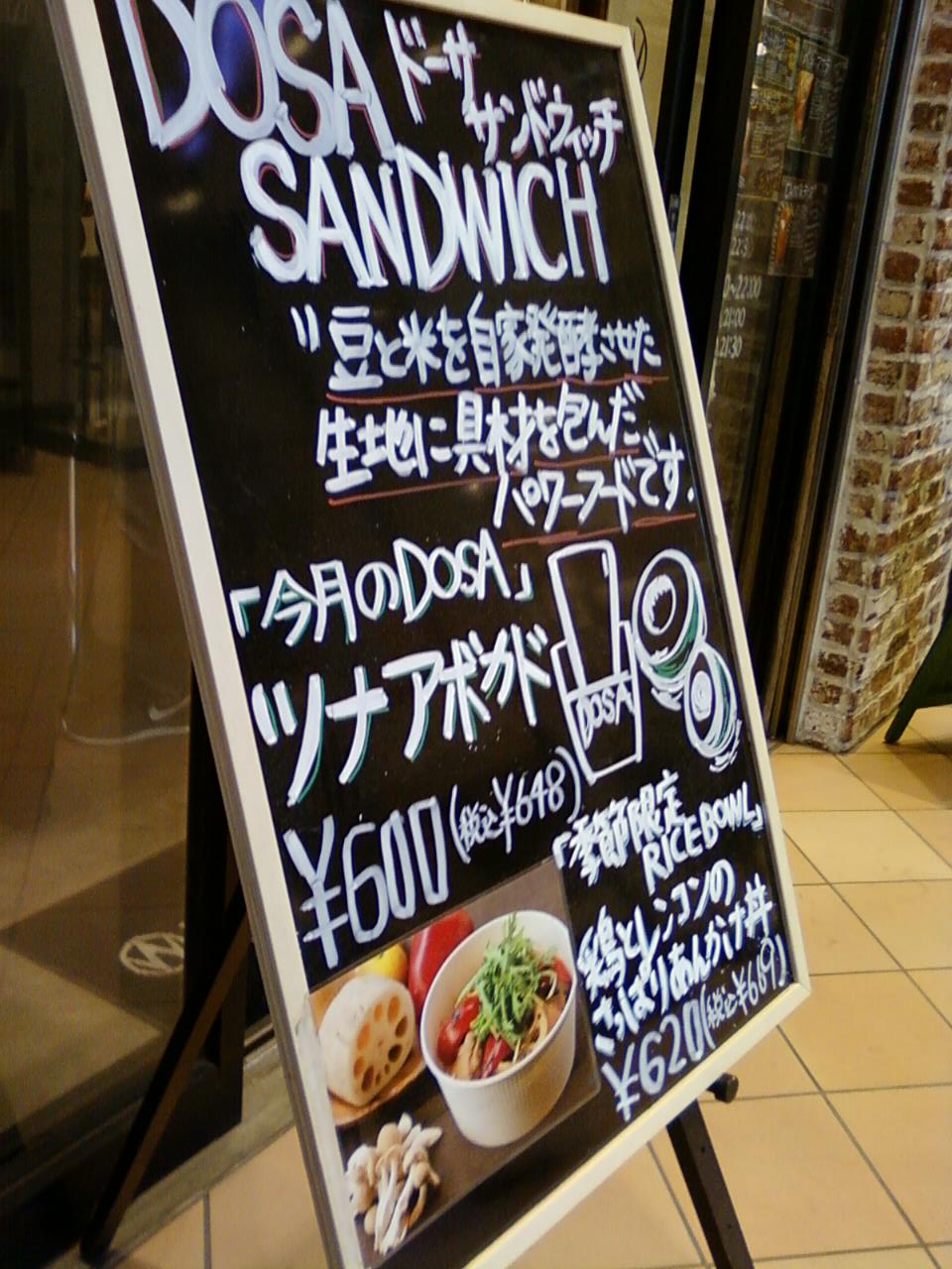 ここのワイヤードカフェさんは、JR有楽町駅から一分のところにある、ルミネの一階にあります。ワイヤードカフェはよく駅ビルなどに比較的広いスペースで店内でパソコンを使うイメージがありますが、ここはどちらかというとテイクアウト専門で座席は少ししかないスタンドカフェです。DOSAという自家発酵させた丸い生地で具材を巻いたサンドイッチがおすすめです。