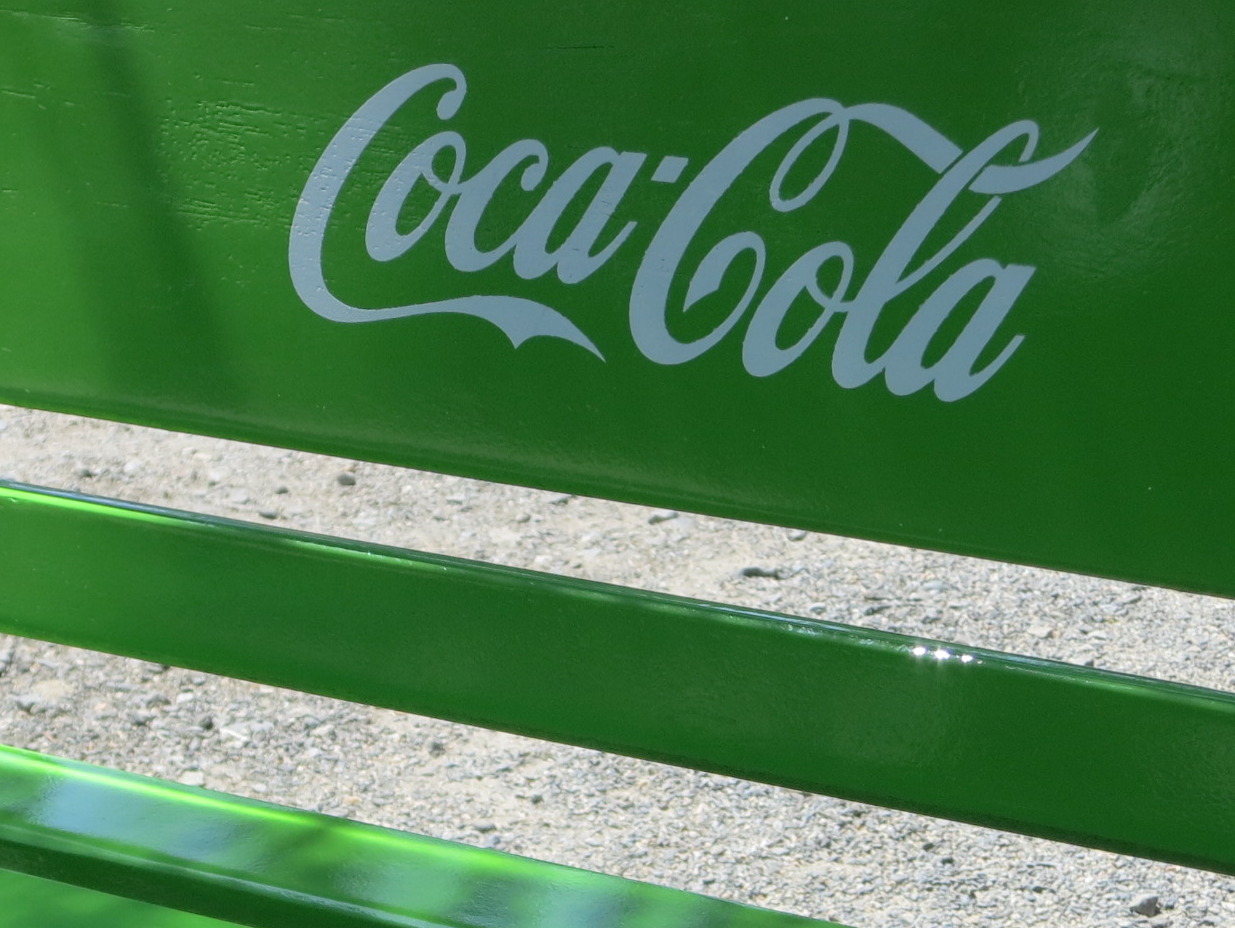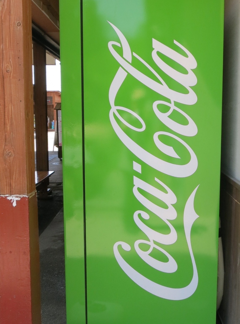 入るとすぐに「コカコーラ」の「みどり色」の自動販売機とベンチが