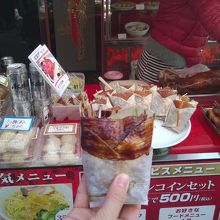こちらの北京ダックは500円ですが、まずまずのお味だと思いました。タレがたっぷり掛っていて濃厚なお味でしたが、外側に巻かれている紙と北京ダックの皮が似ていてがぶっと咬むと紙まで食べてしまうのには閉口しました。