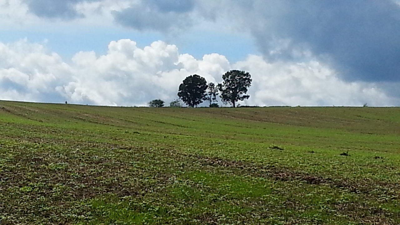 木の近くへは道路が農道なので、車では行けないようですが、たぶん近くで観てもあまり実感はわかないと思います。遠くから観ると、大小の3本の木だけがあり、それがほのぼのと見えるというか、バックの風景ともあいまって幸せそうに感じることができるところが良いと思います。小さい子供の親子が、手をつないでいる光景が思い浮かんで心がやさしくなるような気がしました。