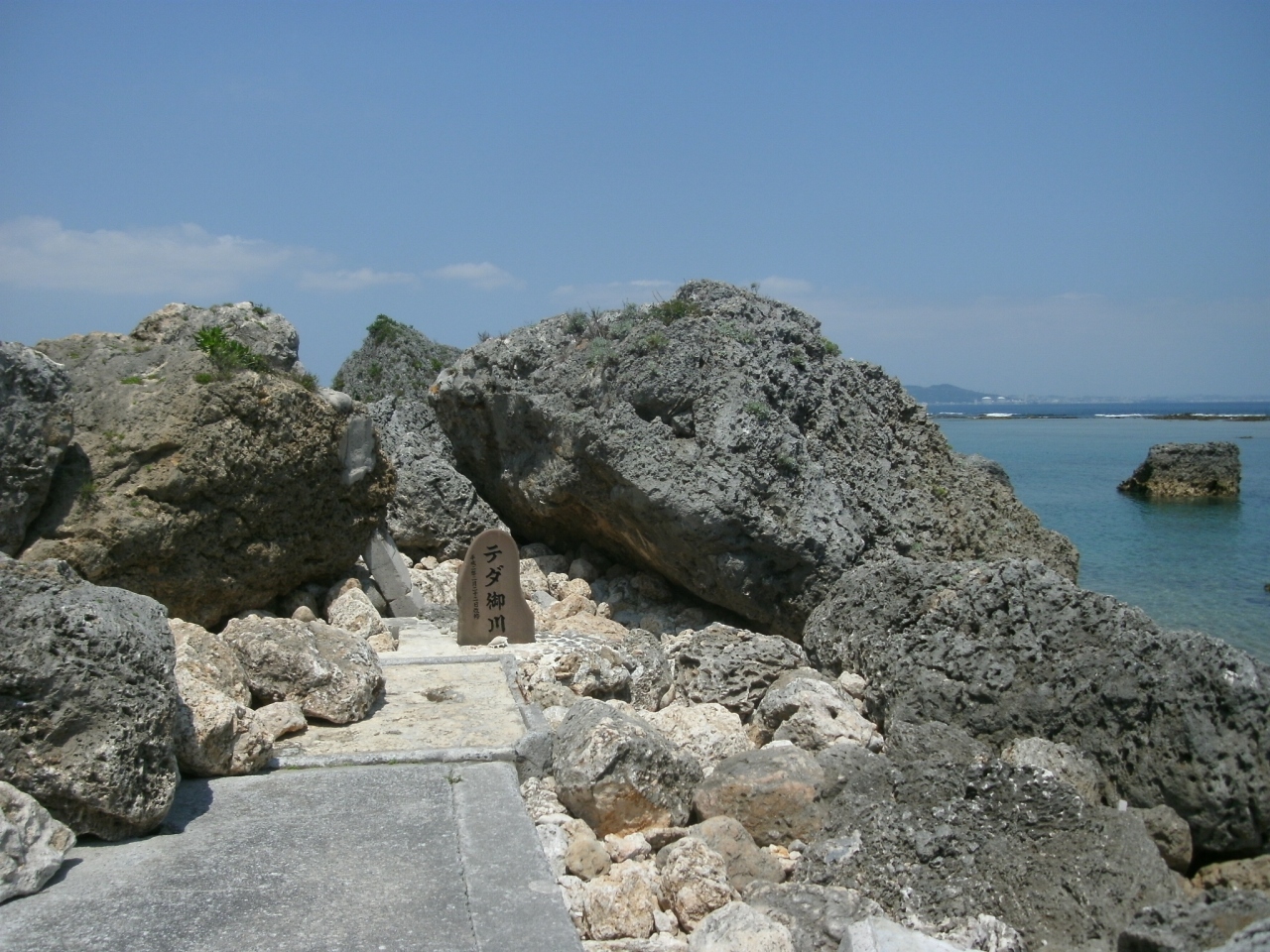 「テダ御川」は、南城市の知名崎の海岸にある泉で、太陽神が降臨した聖地とされています。“テダ”は、太陽あるいは太陽神を意味しています。