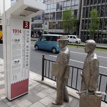 一連の絵は、鹿児島市立美術館に収蔵されています。弟子と共に港に向かう2人をオブジェにしています。