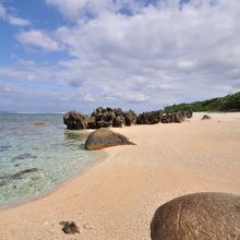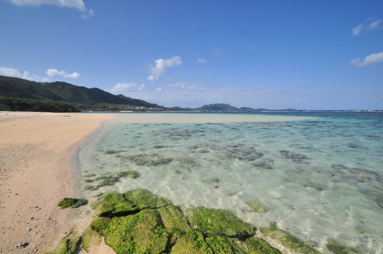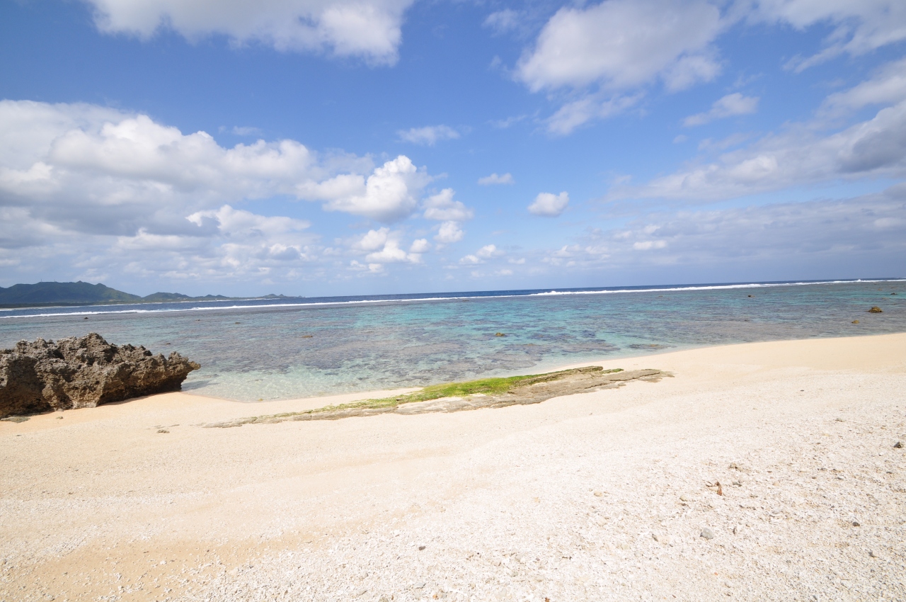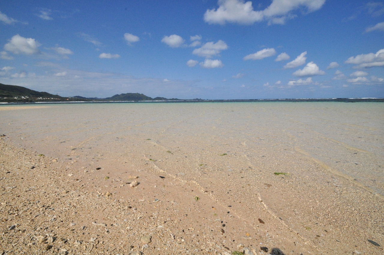 民宿花城が入り口のそばにあるし、県道からは米原公民館から入ればいいかな、それに米原キャンプ場のバス停からすぐにビーチに出れます。