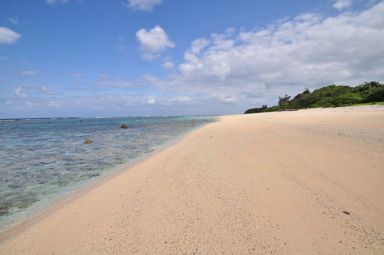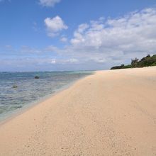 白い砂浜はきれいで、長い海岸線が魅力かな。