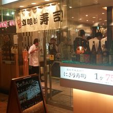 品川駅構内にあるお寿司屋さんです。立ち食いですがちゃんと職人さんが握ってくれるので、本格的な握り寿司を食べることができます。そんなこのお店の利点は何といっても場所にあります。駅構内なので乗り換えの合間や新幹線に乗る前に軽く食べていくということが出来ます。料金も格安。ちょっとだけつまみたいなぁ、という時にもお勧めです。