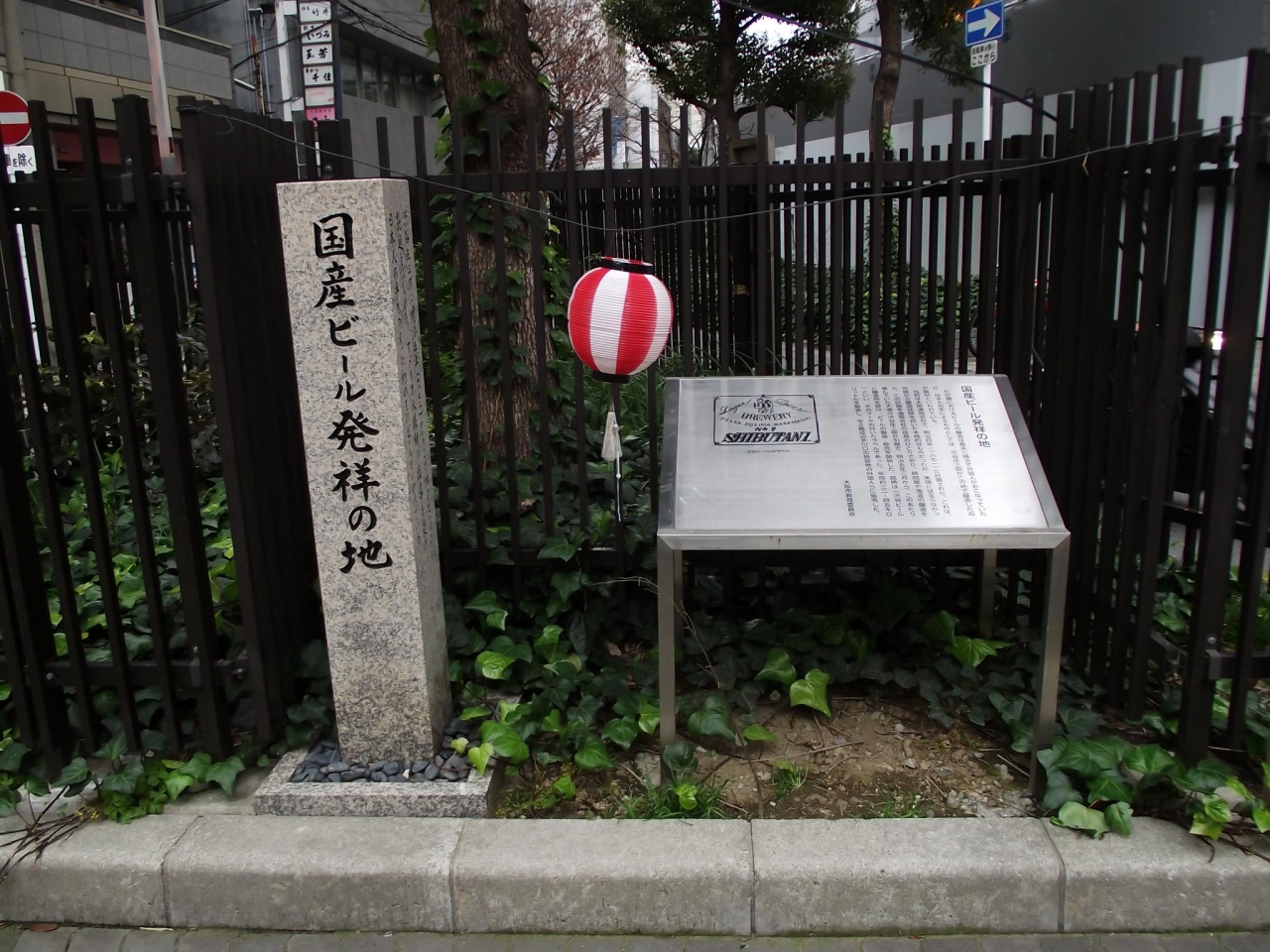 ここは、日本人の手により初めて製造・販売されたビールの醸造所があった辺りです。