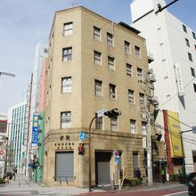 鷹岡株式会社ビルは、神田須田町。靖国通りに面した角地に建っています。昭和10年築というレトロな5階建てビル。日曜日だったので、よく分かりませんでしたが、たぶん、現役のビルだと思います。今の基準で言えば、敷地面積はあまりないので内部は窮屈かもしれません。