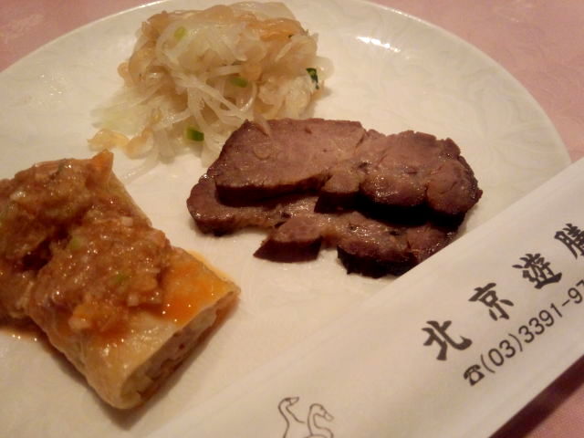 前菜は、自家製焼豚、クラゲ&大根、湯葉巻。チンタオで乾杯~。