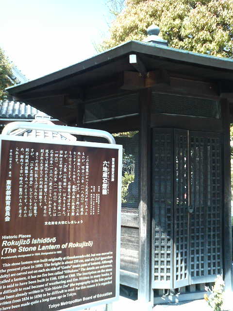 閉ざされたお堂の中にお地蔵様が彫られた石灯籠が保存されていて、一説には1100年代の建立といわれ、東京最古の石灯籠とのことです。