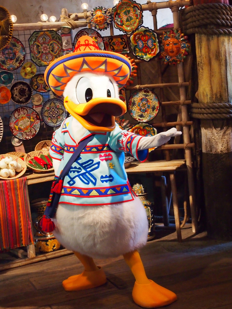 わざわざならばなくてもメディテレアンハーバーのショーとショーの合間の時間帯に入り口の地球儀付近に行くとドナルド・ディジー・プルート・マリーなどに遭遇することが多いです。確実にドナルドに会いたい人にはおススメです。ドナルドの動きすごく可愛いです。