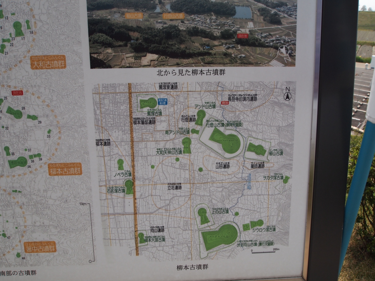 国道169号線沿いにある大きな二つの古墳の一つです。行燈山古墳とよばれています。まわりを環濠で囲まれた、いかにも陵という感のある古墳です。このあたりは古墳が大変多くて、天理市トレイルセンターからは、それらの古墳が見渡せます。