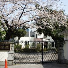 フィリピン大使館公邸は、門の外から眺めるしかありませんが、鉄筋コンクリート造2階建て。白い外壁、アーチ型の開口部が特徴のモダンな建物です。昭和10年に建てられたもので、この辺りは、戦後の焼け残り地域。歴史的建造物が集中している一角のようです。