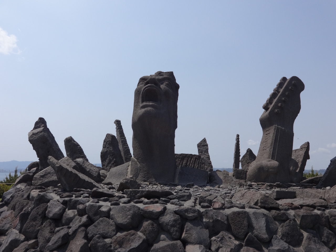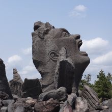 平成16年に行われた長渕剛オールナイトコンサートを記念して造られたモニュメントです。38tもの桜島の溶岩を使って造った像は、高さ3.4mと迫力満点です。
