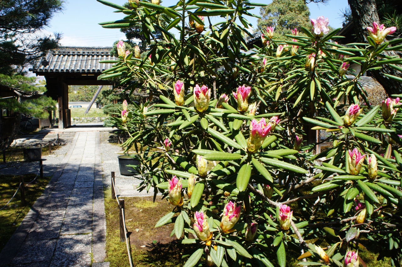 平成15年に特別公開された時に拝観しましたが、以来非公開かと思います。ただ、門を入って前庭の辺りは散策可能。シャクナゲがもう少しで開花するところでした。