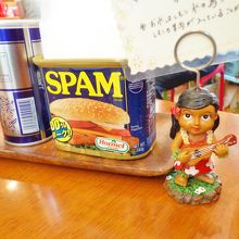 テーブル席に案内されてまっているとスパムおにぎりがカウンターの上に