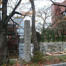 “高瀬川”は、角倉了以とその子素庵により、慶長19年(1614年)に京都と伏見間の物資輸送のために開かれた運河で、高瀬川という名前は輸送に高瀬舟とよばれる平底の舟が用いられたために付けられた名前で角倉川ともいわれています。 “舟入”は、物の積み下ろしと舟の方向転換の場所で、高瀬川が開かれた当初は二条~四条間に七か所作られましたが、その後、増減があり、現在は、木屋町通二条下る西側に「一之舟入」だけが残っており、国の史跡として保存されています。舟入の付近には復元された高瀬舟が浮かんでいます。
