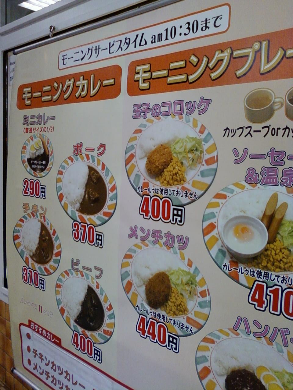ここのカレーハウス11イマサさんは、新宿駅西口に連結している、京王モールさんの一角にあります。カレーの専門店で、ポークカレー、バターコーンカレー、キーマカレー、チキンカレー、ビーフカレーなど、カレーならとにかく何でもあります。それに10時30までのモーニングメニューでは、なんと290円のミニカレーや、ハンバーグやメンチカツのプレートもあるんですね。牛丼チェーンとはまた違ったうれしいファストフード体験です。