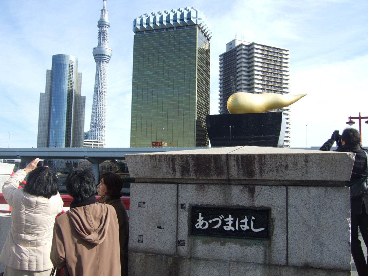 浅草寺でお参りし、そのあとスカイツリーが見えるところまで歩いて行きました。