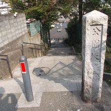 山手公園のテニスコート脇から上野町4丁目に元街小学校沿いに下る(上る)坂(階段)、道標があります(写真とる方多い)。