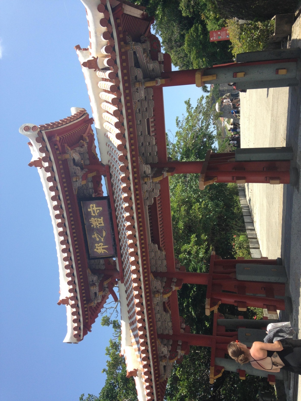 モノレールの首里駅から徒歩で20分あまりで守礼門まできましたタクシーに乗ろうかなと思ったのですが歩くことにしました修学旅行の学生もグループで行動して歩いていました学生でもたらたら歩く子さっさと歩く子とさまざまでした