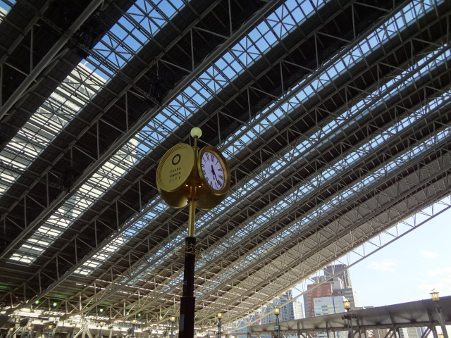大阪ステーションシティと名付けられ2011年に再開発オープンした、大阪の新名所と言えます。大阪駅を降りて、エスカレーターを登ると最初に足を踏み入れるのが、「時空の広場」(ときのひろば)です。広大な吹き抜け空間に、大きな時計があるのが印象的でした。