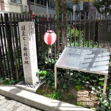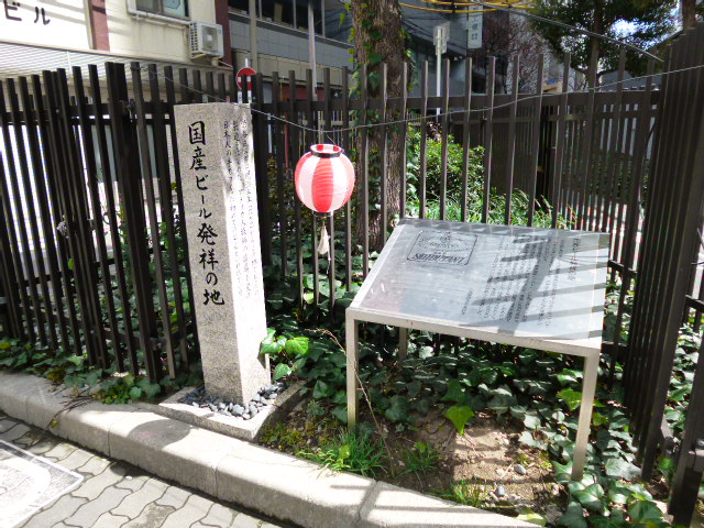 私たちは「クラウンプラザ大阪ホテル」に宿泊していたのですが、そのすぐ近くに「国産ビール発祥の地」の石碑があります。