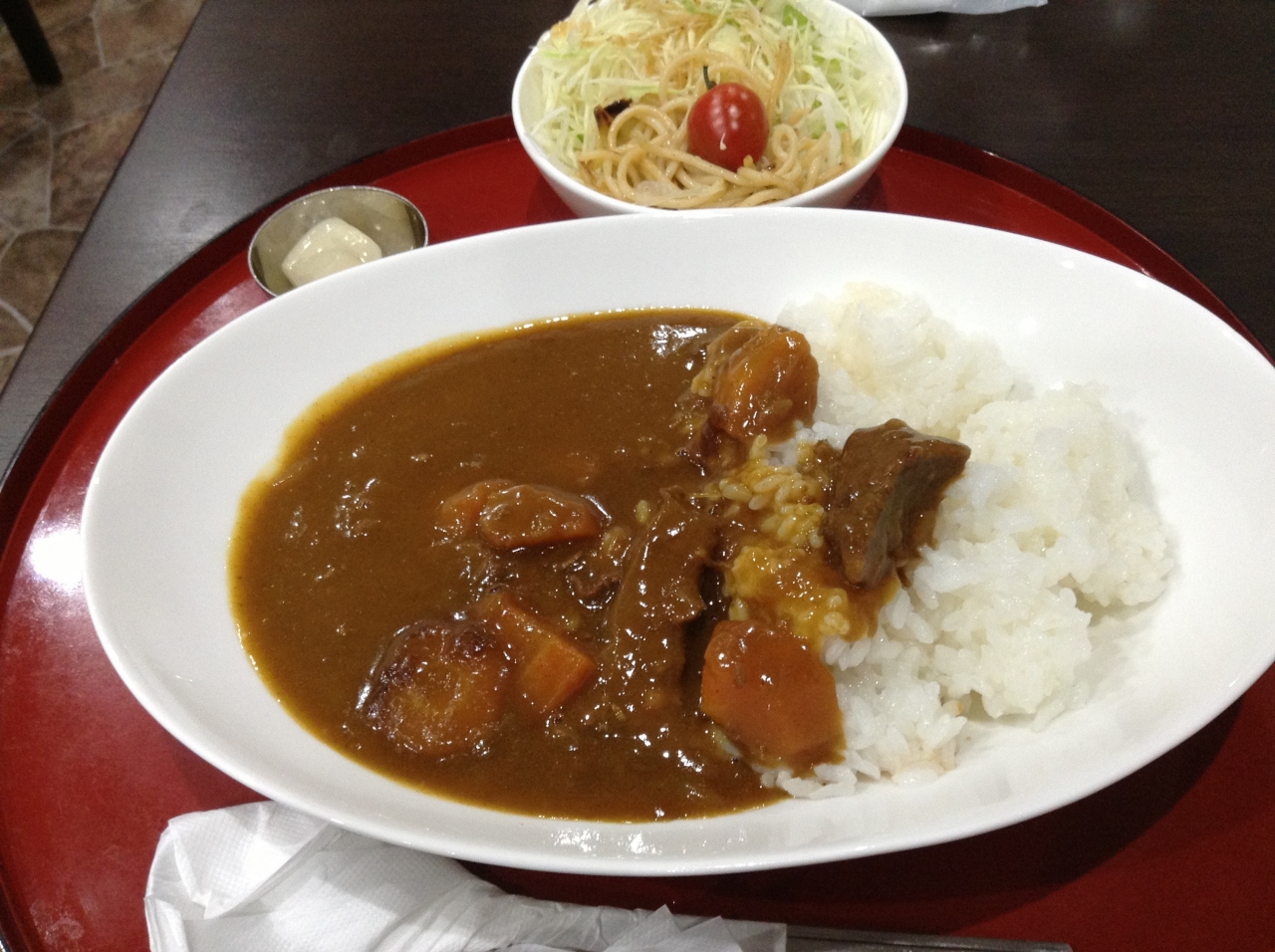 カレーは、辛過ぎない家庭的な味のビーフカレーで美味しかったです。コーヒーもついてきます。