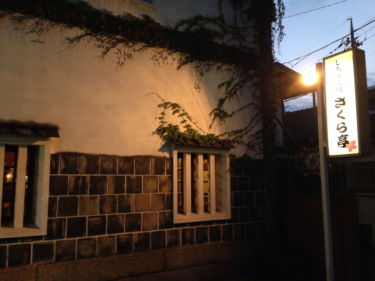 倉敷美観地区にあり、美観地区ではお馴染みの白壁の外観が目を引く建物です。場所は駅から徒歩10分くらいのところで、自転車屋さんの裏にあります。店内は木造で、時計とか置物など大正レトロな雰囲気があり、畳の座布団の上に座るスタイルで落ち着いていました。イス席もあります。