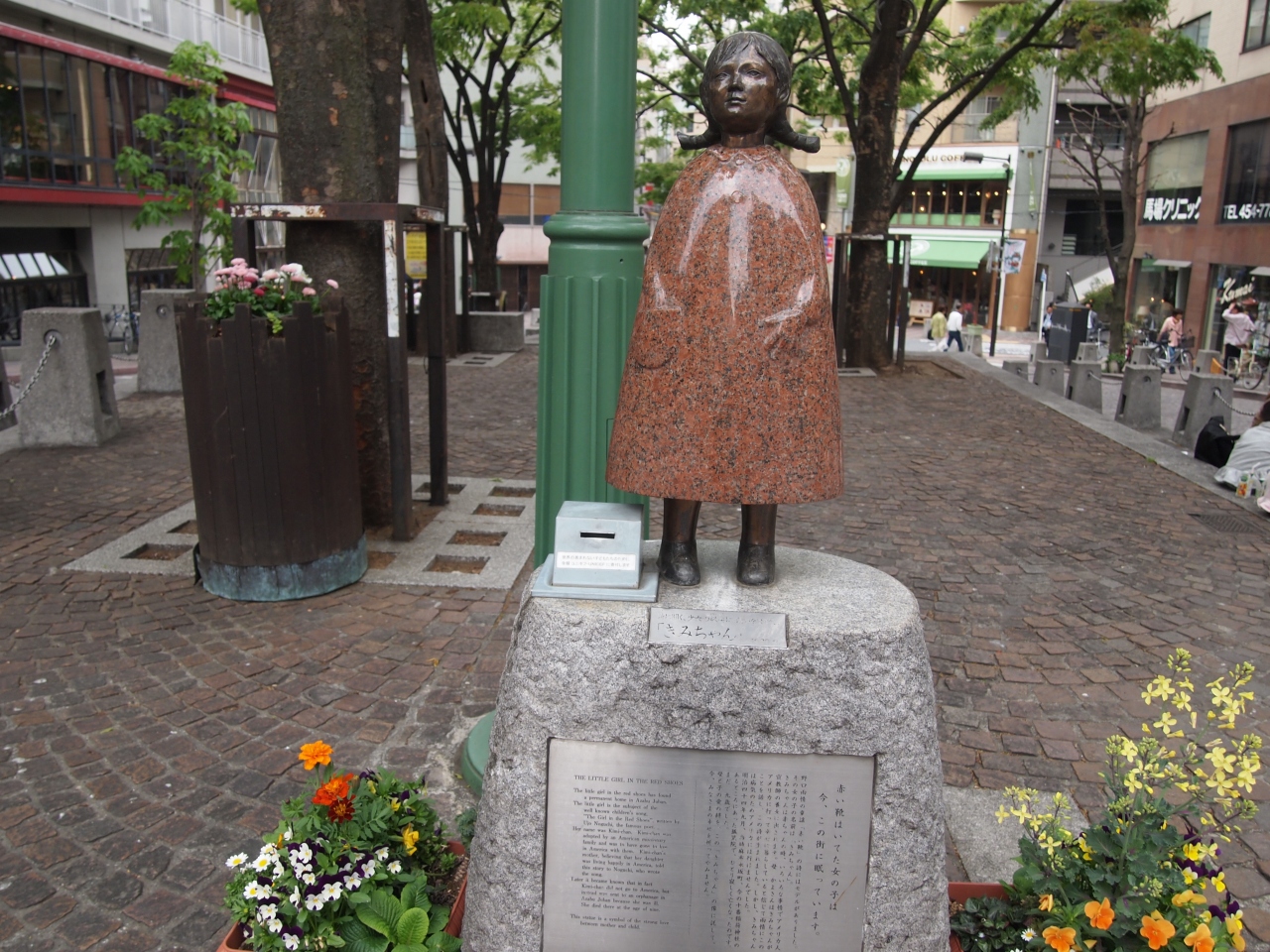 思っていたよりもずっと小さな像でした。赤い靴をはいていた女の子といえば横浜をイメージしますが、ここにも像があるんですね。意外に有名らしく、自分が見学している間にも「ほら、これがきみちゃん」と案内している人がいました。