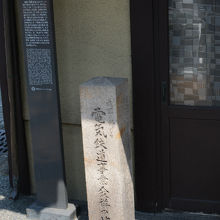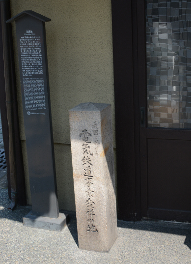 鉄道ファンなら常識なのでしょうが、この石碑をみるまで知りませんでした。明治28年に、京都電気鉄道株式会社が、京都市下京区東洞院通東塩小路踏切から、この場所の伏見町油掛通まで電気鉄道を日本で初めて開業したそうです。ここと、京都駅の出発点に石碑があるようです。