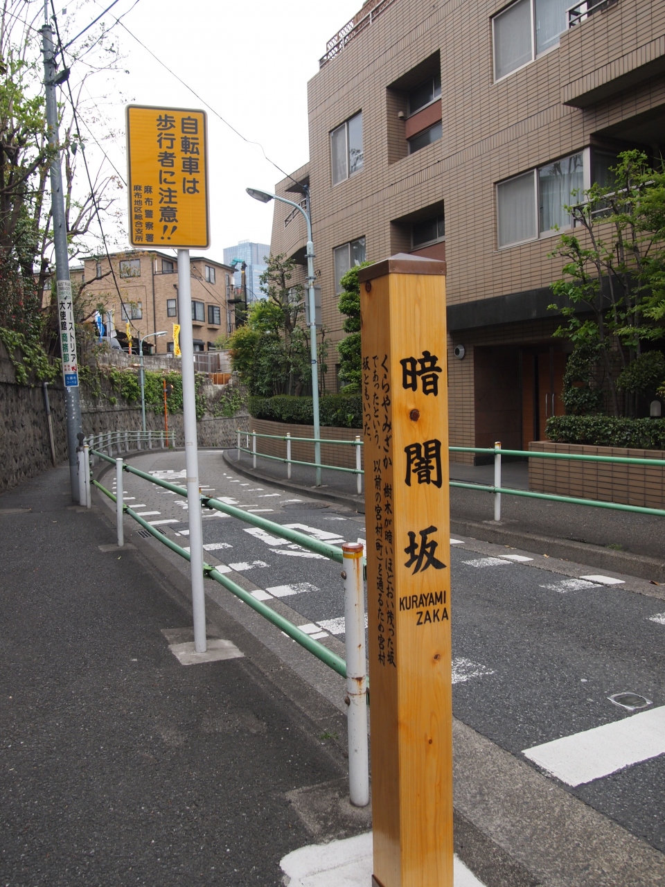 昔は草木が多く茂っていて暗かったことからこの名前がついたそうですが、今ではその面影はなく、抜け道として愛用されているのか高級車ががんがん通ります。歩道がありますが狭いので注意が必要な場所です。