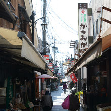 寺田屋のすぐ横の通りで、近鉄京都線・桃山御陵前駅へ行く途中にある商店街です。京阪の中書島駅の反対方向になります。狭い通りの商店街ですが、龍馬などの幕末グッズのお店や京都のお土産を購入するにはちょうどいい広さかもしれません。
