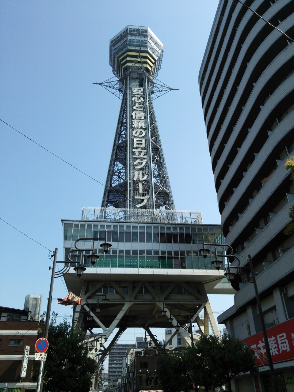 大阪文化の象徴ともいえる通天閣に行ってきました。通天閣にたどり着くまでも、大きな超派手な看板に驚き、独特な雰囲気に興奮気味でした。きん肉マンやグリコとコラボしていろいろ工夫のほどがうかがえました。入口は小さくわかりにくかったです。夜は紫色のライトアップで、これまた大阪のイメージにあっています。