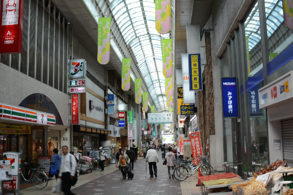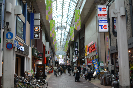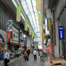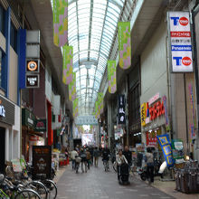 近鉄・桃山御陵前駅や京阪・伏見桃山駅から西に伸びるアーケドのある商店街です。生活雑貨や日用品のお店が多いですが、お土産になる菓子店なども豊富です。アーケード街ですか天井が明るく活気がありそうな商店街です。雨天のときは、酒蔵街への散策から戻るとき、桃山御陵前や伏見桃山駅へこの商店街を使うと便利です。