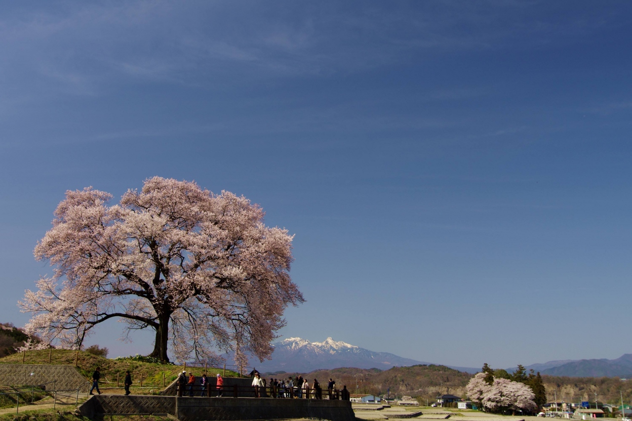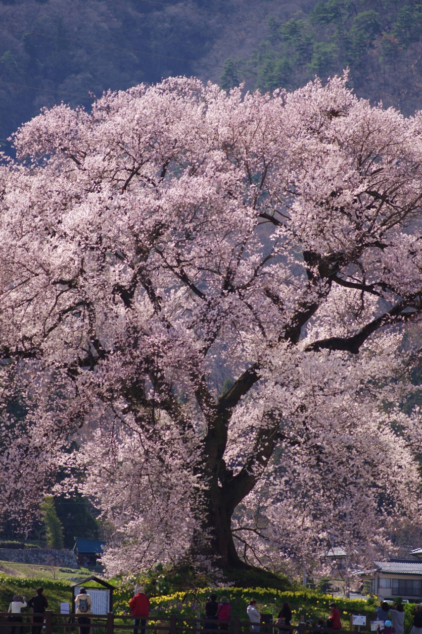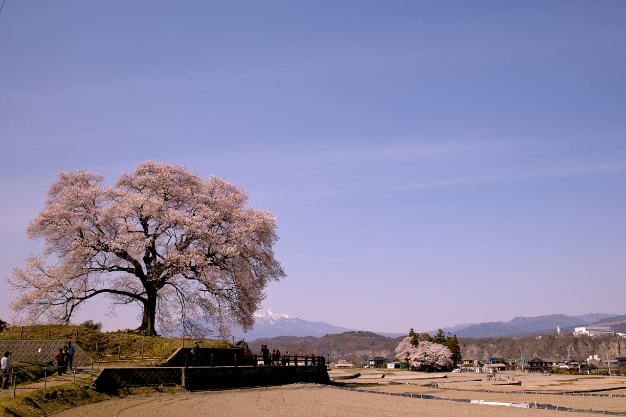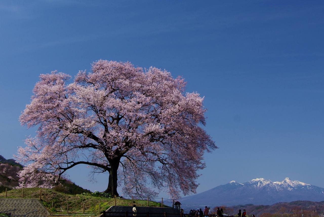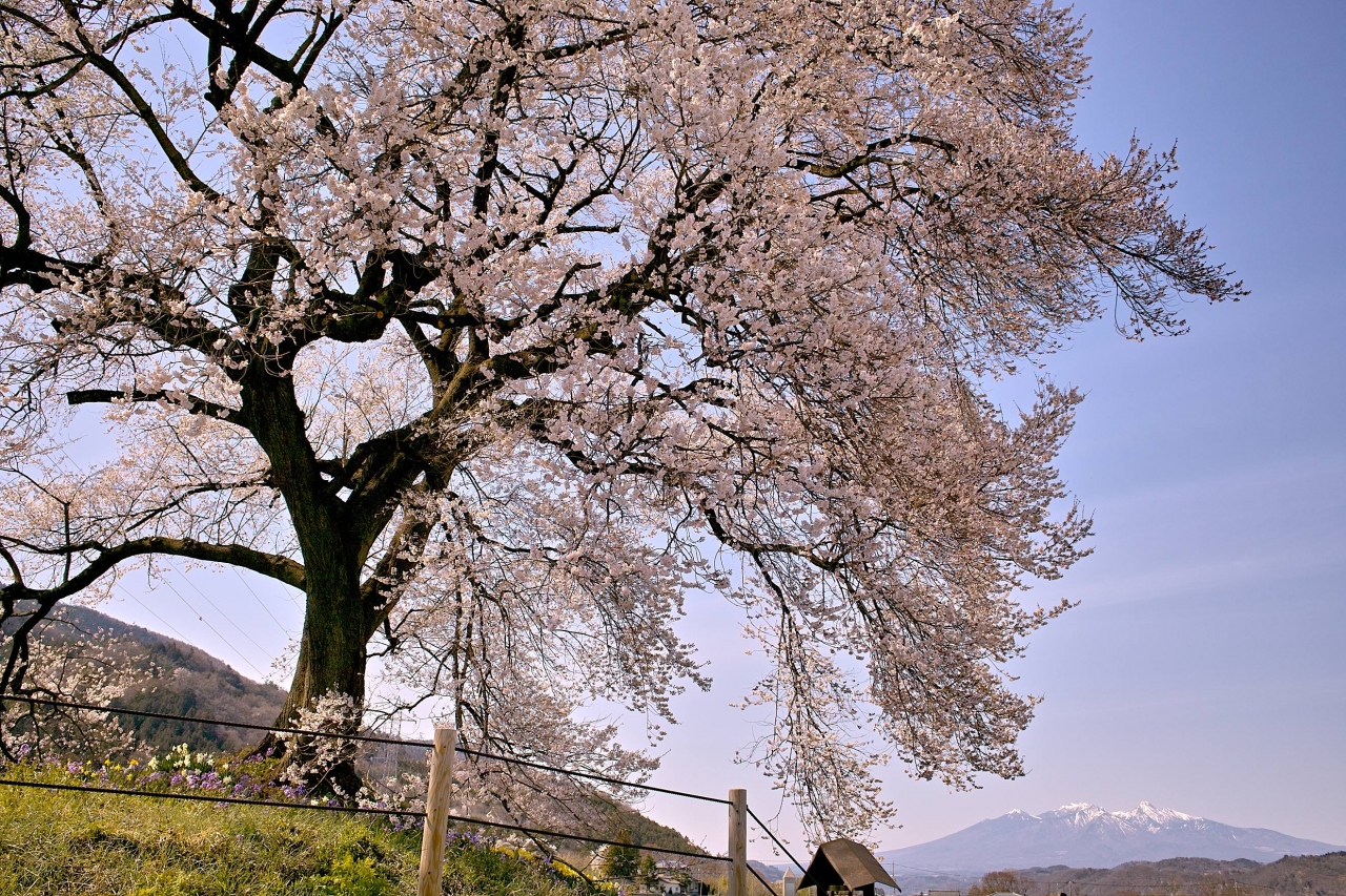 堂々たる一本桜、八ヶ岳とベストマッチ