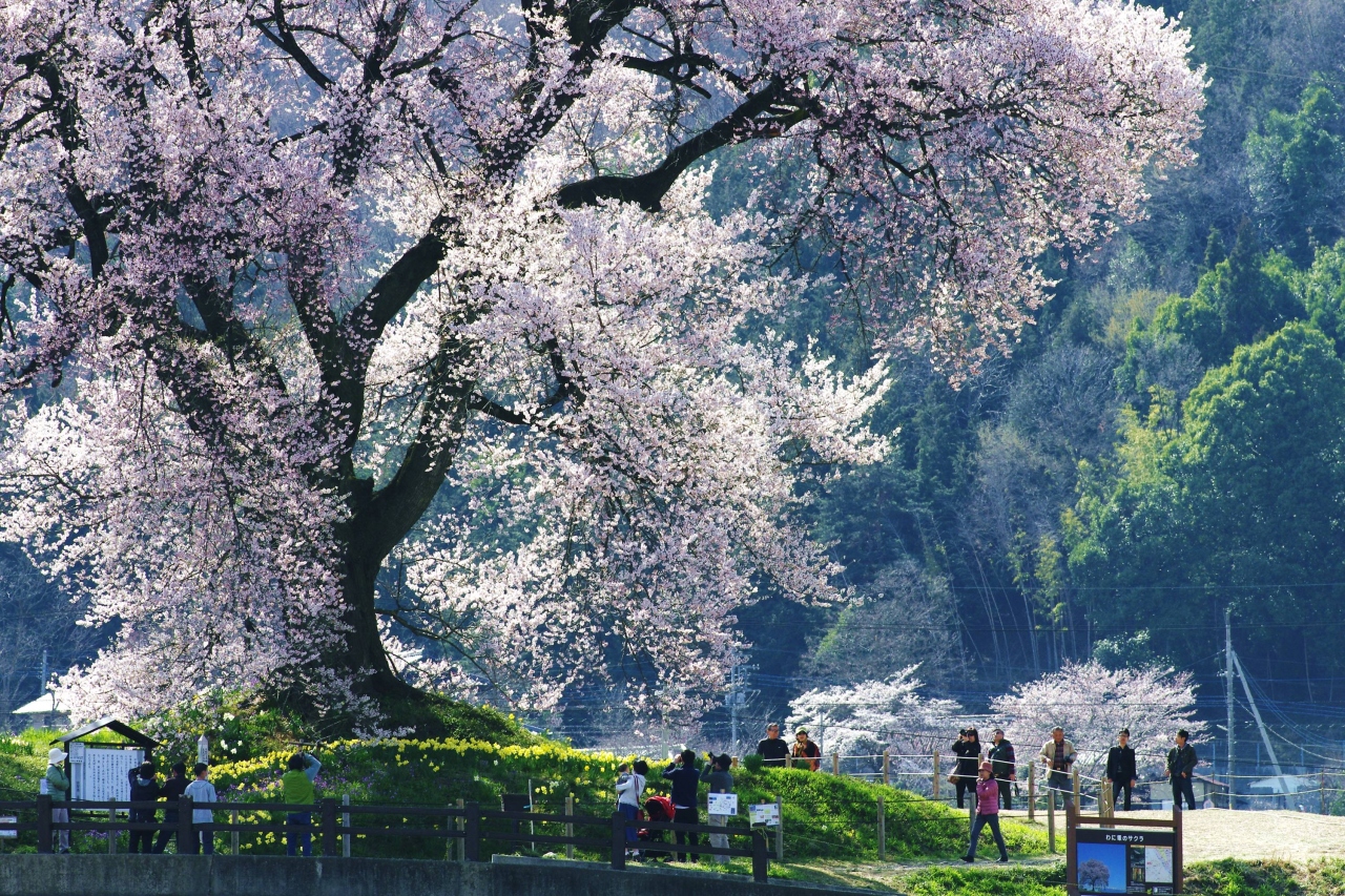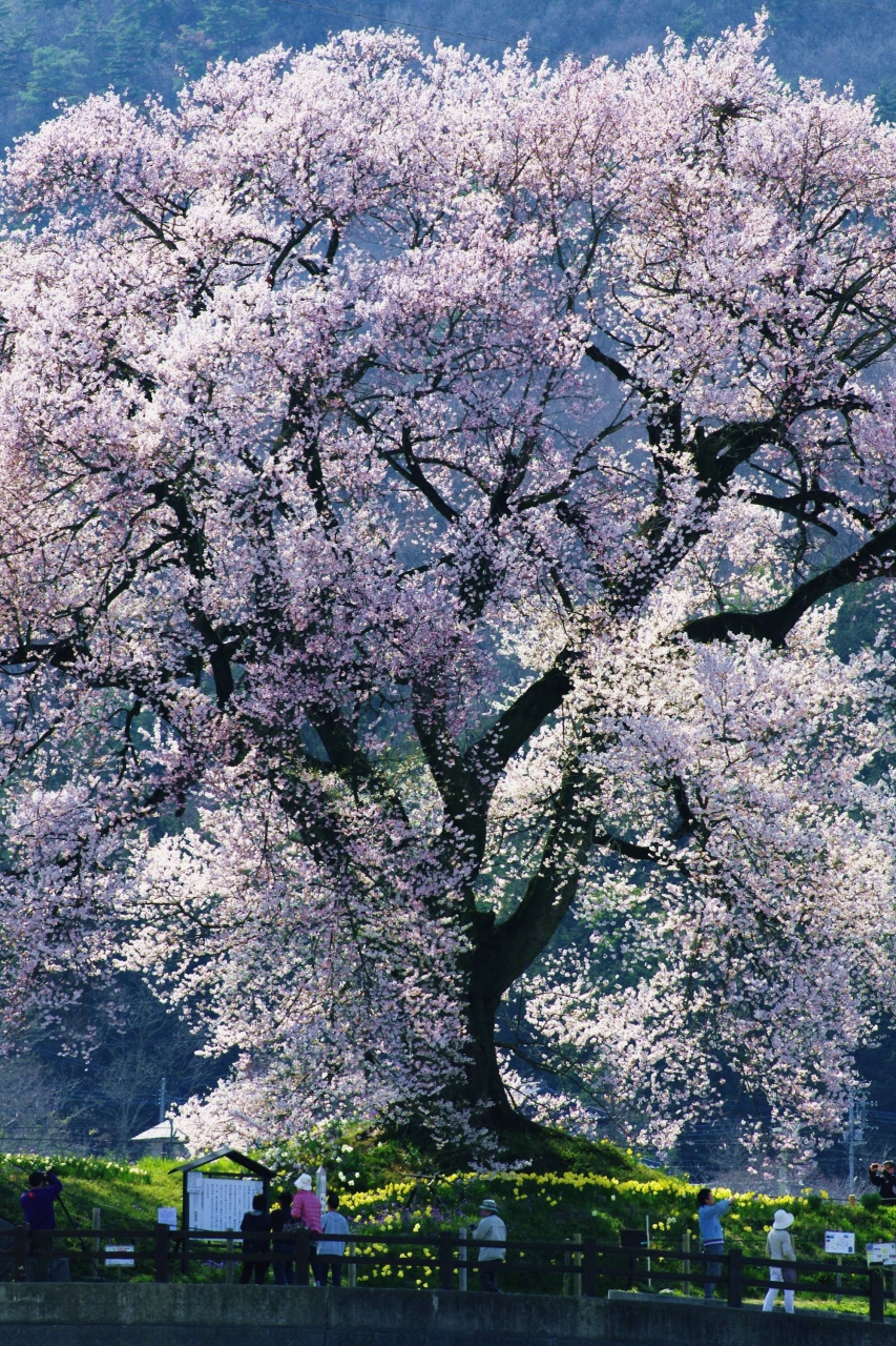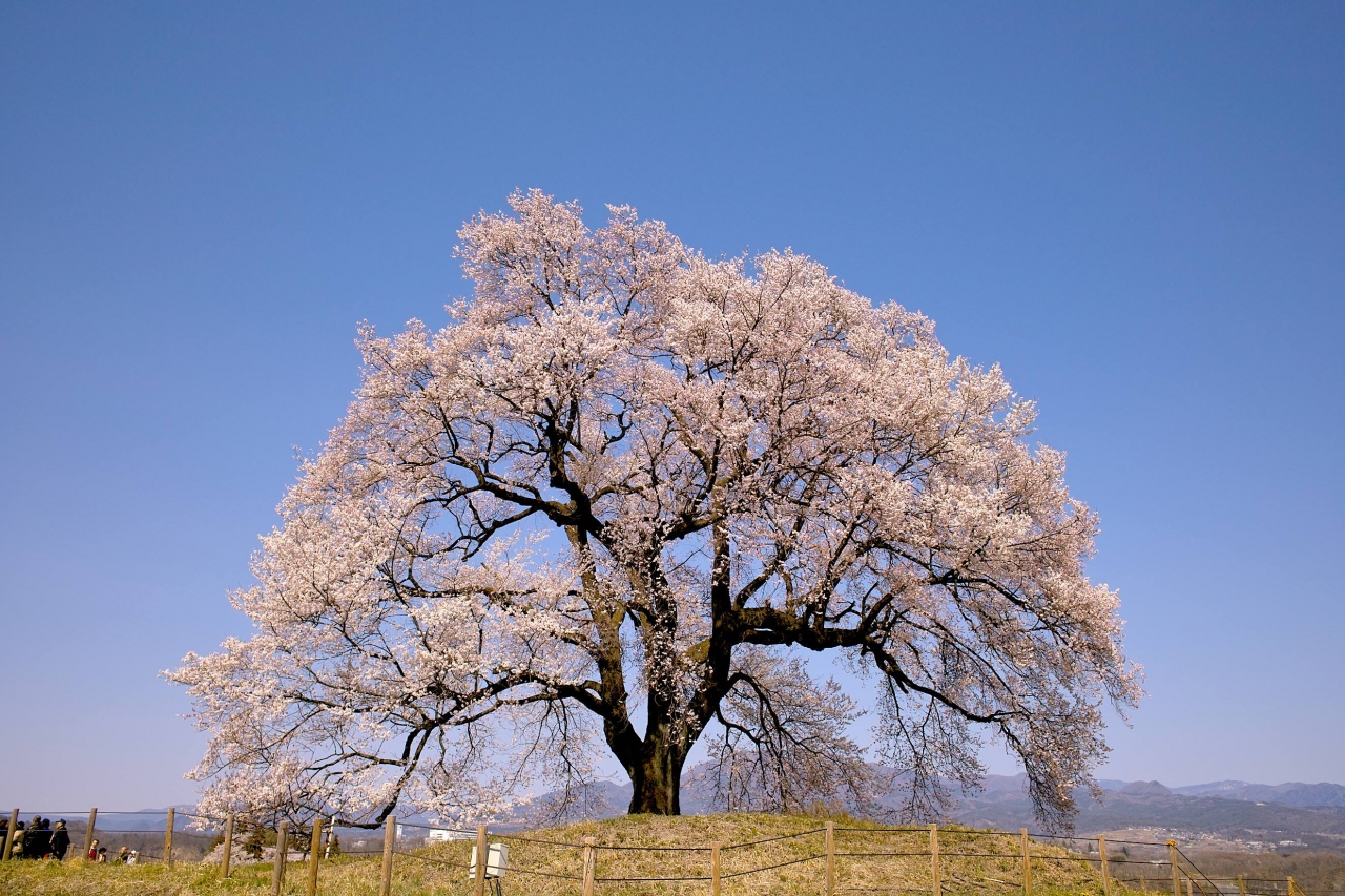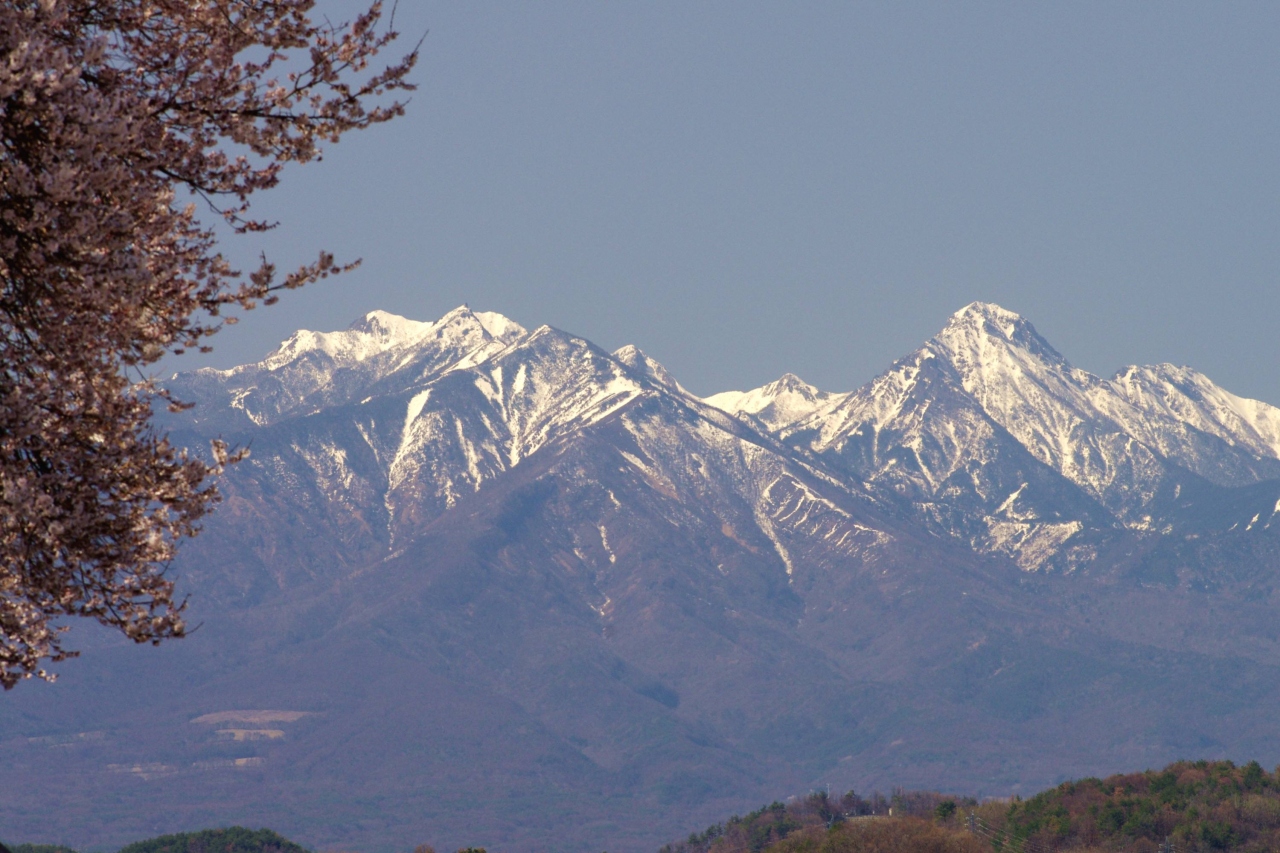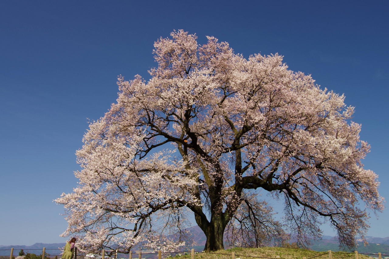 堂々たる一本桜、八ヶ岳とベストマッチ