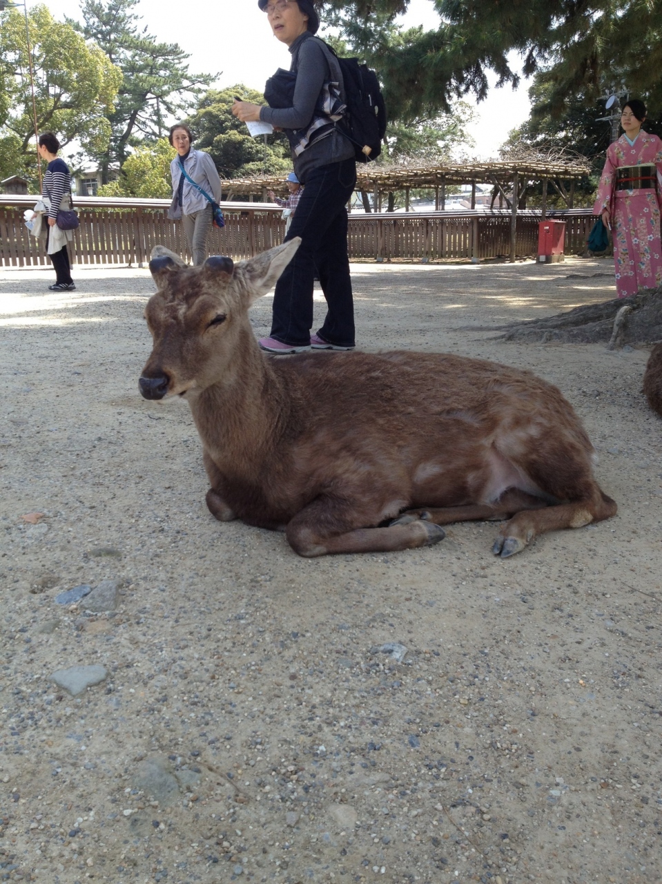 鹿は神聖なものなので絶対にいじめてはいけないそうで、鹿も人間を全然恐れていないし、襲ってもきません。
