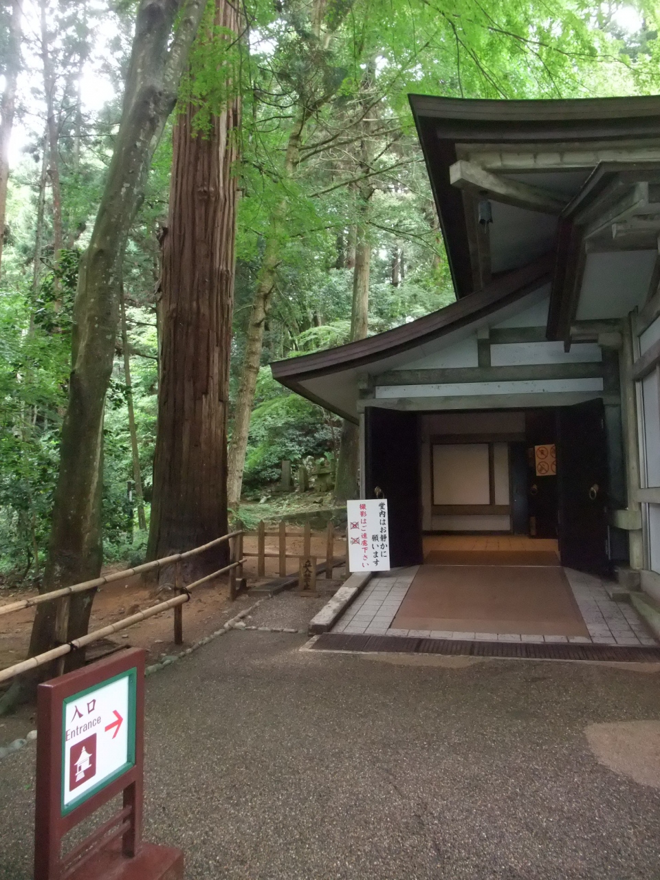 中尊寺で最も有名な金色堂は堂全体を金箔で覆われています。ただ覆堂の中に納められているので、金箔のお堂を、外から目にすることはできません。堂内は撮影禁止になっていました。