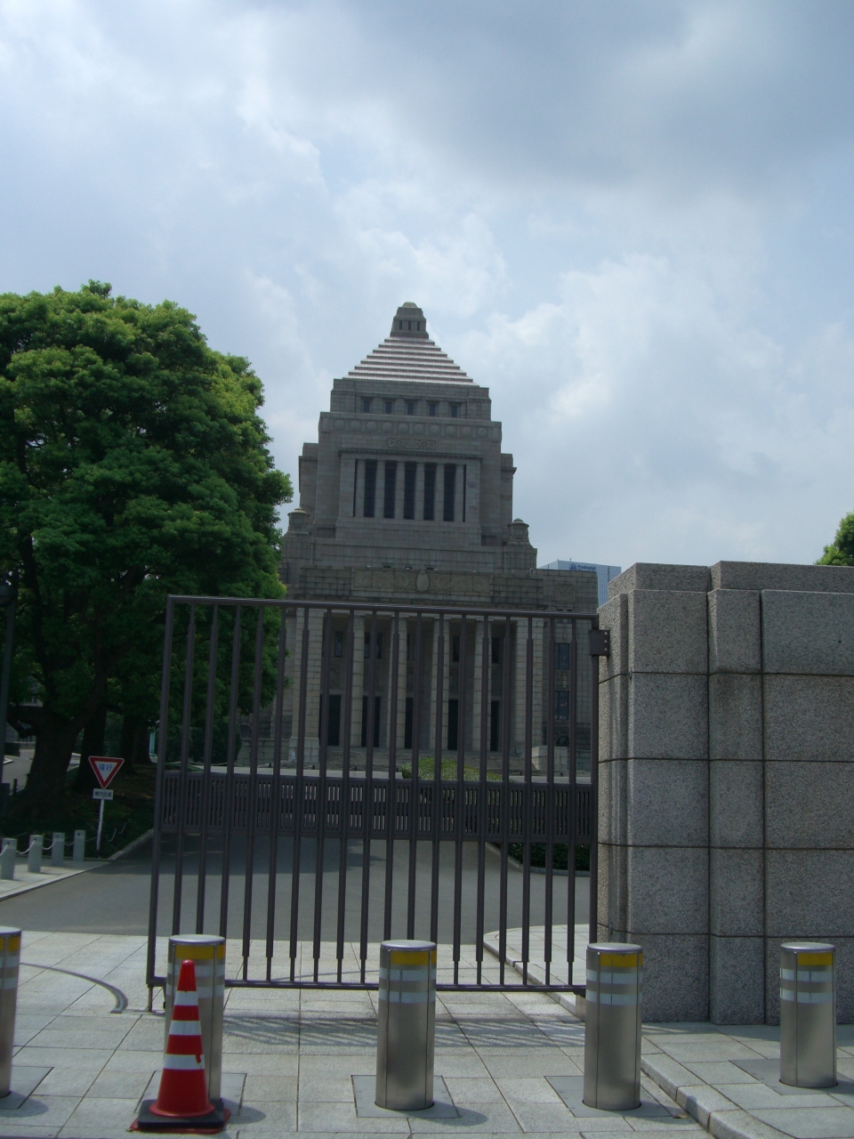 東京見物に行って、生まれて初めて国会議事堂を生で見ました。思っていたよりも小さく見えました。皇居の桜田門の方から歩いて行きましたので、真正面から国会議事堂を見ることができました。周りには警視庁なんかもありました。