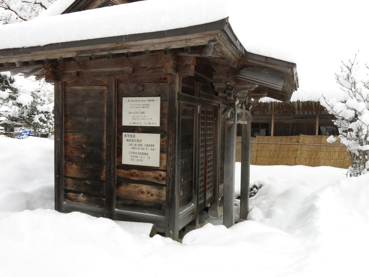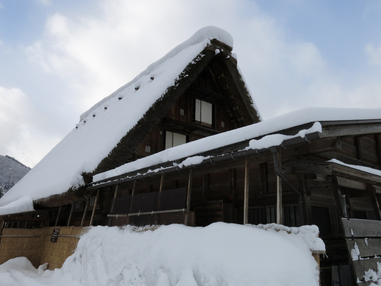 どっしりとした構え・・・さすがに、重要文化財だけありますね。雪がたくさん屋根の上にのっていて、時折”ドサーーッ”と雪が落ちてきました。これだけの雪をのせても、しっかり支えているんですね。古の巧みの技に感嘆しますよ!!