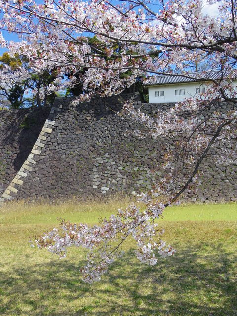 「多聞」とは、防御をかねて石垣の上に設けられた長屋造りの倉庫のことだそうで、江戸城本丸は総石垣で築かれ、石垣の上には多聞が15棟がありましたが、現存しているのは蓮池掘石垣の上のここだけだそうで、富士見多聞と呼ばれてます。特別公開で行き桜も綺麗でした。