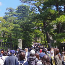 西桔橋は昔あった跳ね橋は今はなく現在一般的な普通の橋がかかっていますが、昔ここにあった西桔橋門は現在は石垣の一部が残っているだけでかつての門は頭の中で想像するしかないです。特別公開で行けましたがたくさんの人で昔の門を空想する雰囲気ではありませんでした。
