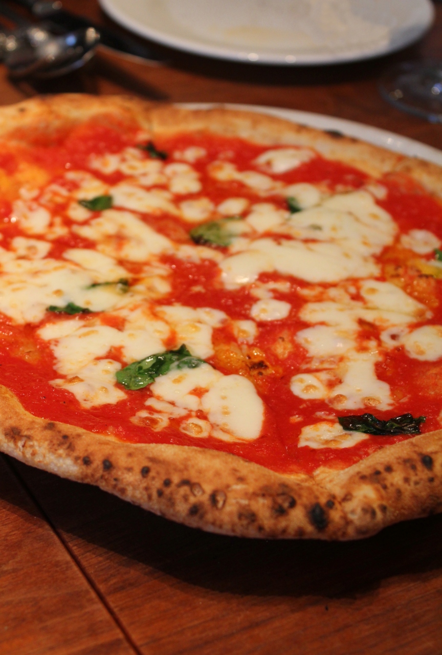 イタリアからの取り寄せた『ACUNT NAPORI(アクントナポリ』の薪窯で焼かれた パリパリ、それでいてモチモチ感のあるピザ。生地だけでなくトマトソースもバツグンに美味しい!