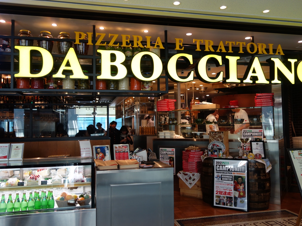 「Kitte」の5回にあるダ・ボッチャーノ。本格的なイタリアンです。ピッツァをやく釜が入り口にあります。ピッツァ ワールドカップ2012でチャンピオンになった人が店長をしているようです。しっかりとした味ではずれはありません。混んでいるのが難点でしょうか。